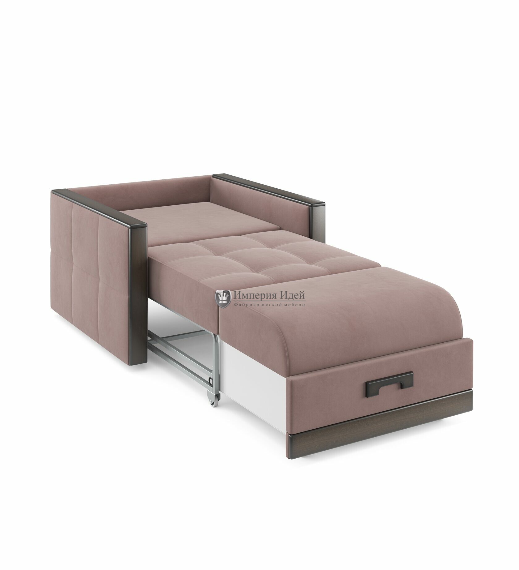 Длина: 95 см Глубина: 100 см Спальное место: 70*200 см Механизм: выкатной двухпозиционный металлокаркас