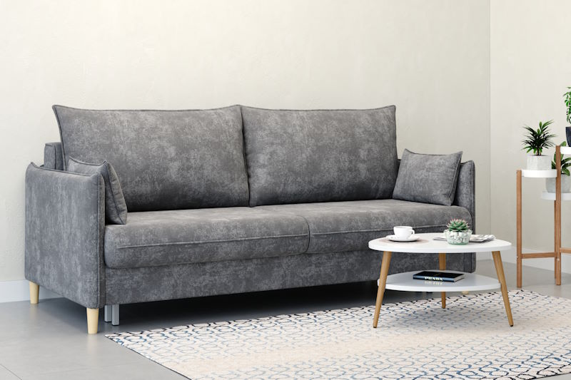 Диван «Стенли» с оригинальной строчкой и металлическим каркасом обладает механизмом трансформации «тик-так», что позволяет легко преобразовывать его в спальное место. Высокие ноги (120 мм) придают ему легкость и элегантность, а металлическая сетка в основании обеспечивает хорошую вентиляцию и комфорт. Скругленные формы делают диван уютным и стильным, идеально вписывающимся в любой интерьер.
